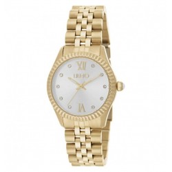 Marke: Liujo Geschlecht: weiblich Kategorie: Uhren Unterkategorie: nur Zeit Herstellercode: TLJ1981 Sammlung: Winzig Bandmaterial: Stahl Gehäusematerial: Stahl Gehäusegröße: 30 mm Wasserdichtigkeit: 50m - 5ATM - 5bar Bandfarbe: Gold Indizes: Römische Ziffern