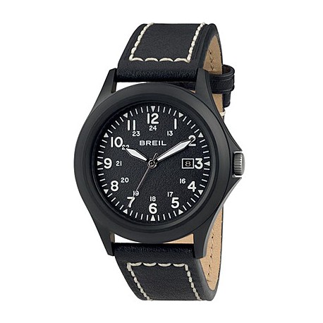 Breil Time Only Herrenuhr aus der Army In Kollektion mit 42 mm Stahlgehäuse Miyota 2115 Uhr mit Quarzwerk 42 mm Stahlgehäuse mit schwarzer IP-Behandlung. Kugeln mit Superluminova-Effekt, schwarzes rundes Zifferblatt mit arabischen Ziffern und Datumsfunktion, Mineralglas. Schwarzes Naturlederarmband mit Stiftverschluss, 5 ATM wasserdicht