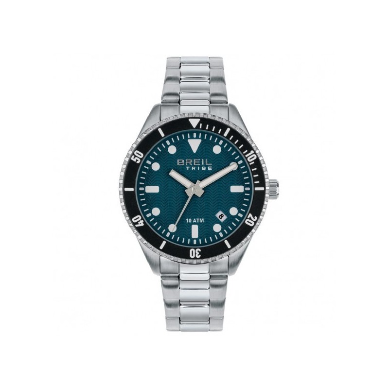 Analoges Zifferblatt mit applizierten Indizes und Datumsanzeige zwischen 4 und 5 Uhr. Mineralglas. Verschraubter Gehäuseboden.
