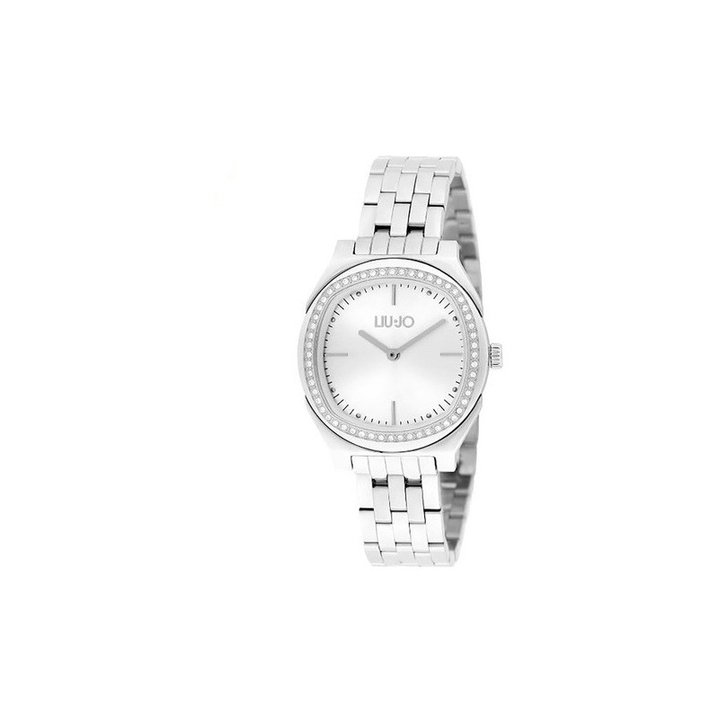 Liu Jo Damenarmbanduhr aus der Fashion Talent Kollektion mit Quarzwerk und Zeitfunktion. Silberfarbenes Edelstahlgehäuse mit 32 mm Durchmesser, mit weißen Kristallen verzierte Lünette, silberfarbenes quadratisches analoges Zifferblatt mit gemischten Indizes, Mineralglas. Silberfarbenes Edelstahlarmband mit Faltschließe, 3 ATM wasserdicht: beständig gegen Spritzwasser, aber nicht unter Druck.