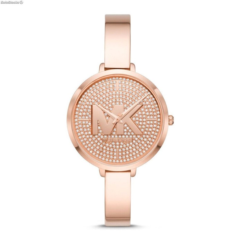 Modische Armbanduhren Michael Kors Charley MK4433 analoge Frau mit japanischem batteriebetriebenem Quarzwerk, Edelstahlgehäuse mit einem Durchmesser von 38 mm in roségoldfarbener Kreisform, poliertem Zifferblatt, Mineralglas und Edelstahlarmband in roségoldfarbener Farbe mit Schnappverschluss, 3 ATM wasserdicht