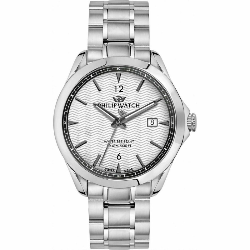 Philip Herrenuhr mit Schweizer Quarzwerk. Gehäusematerial und -verarbeitung: Edelstahl, Gehäusegröße: 46,7 x 41 mm, Gehäusedicke: 10,6 mm, Mineralglas, Armbandmaterial: Metallarmband, Armbandfarbe: Silber, Verschluss: Faltschließe, Wasserdichtigkeit: 10 ATM
