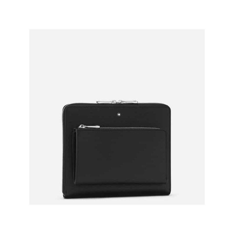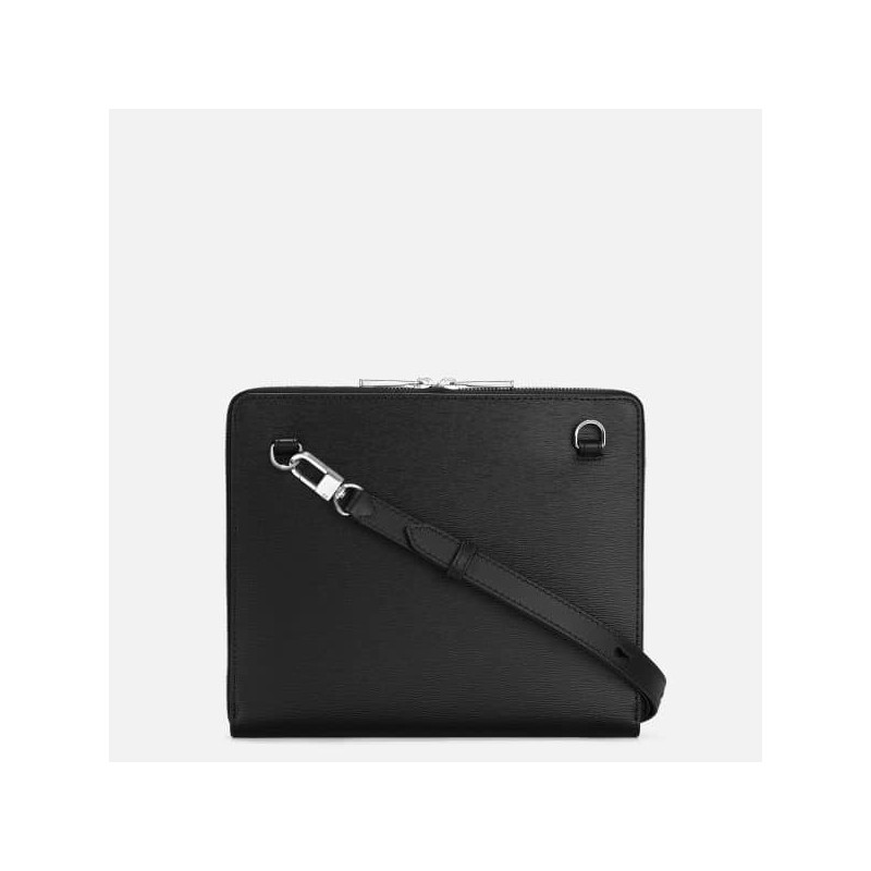 Schwarze Montblanc Damentasche aus der Meisterstück 4810 Envelope Bag Kollektion. Gefertigt aus einer Kombination von geprägtem Spaltleder und glattem Vollnarbenleder, chromgegerbt, durchgefärbt und mit Baumwolle gefüttert. Mit Metallreißverschlüssen. Die Tasche besticht durch schlichte Linien und einen abnehmbaren Schulterriemen für bequemes Tragen. Sie bietet ein geräumiges Reißverschlussfach und eine Reißverschlusstasche auf der Vorderseite für kleinere Utensilien. Maße: 240 x 25 x 300 mm.