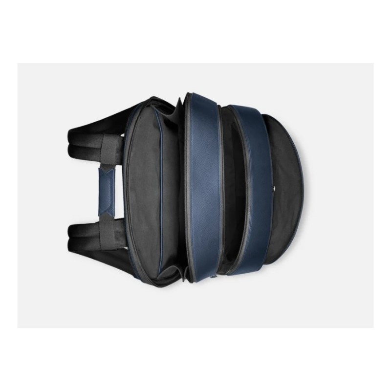 Der große Unisex-Rucksack Mont Blanc aus der Sartorial-Kollektion ist aus vollnarbigem Saffiano-Rindsleder in Tintenblau gefertigt und mit einem Futter aus Polyamid und Baumwolle sowie zwei verstellbaren Schultergurten ausgestattet. Er verfügt über eine Reißverschlusstasche vorne für den schnellen Zugriff auf kleinere Gegenstände und drei Hauptfächer, die ausreichend Platz für Ihre wichtigsten Utensilien und mehr bieten. Zusätzlich gibt es ein gepolstertes Laptopfach für Laptops bis zu 15 Zoll, ein Reißverschlussfach, zwei offene Fächer und zwei separate Fächer für Ihre Schreibutensilien. Dank des Befestigungssystems lässt sich der Rucksack einfach an einem Trolley anbringen. Seine Maße betragen 340 x 150 x 420 mm.
