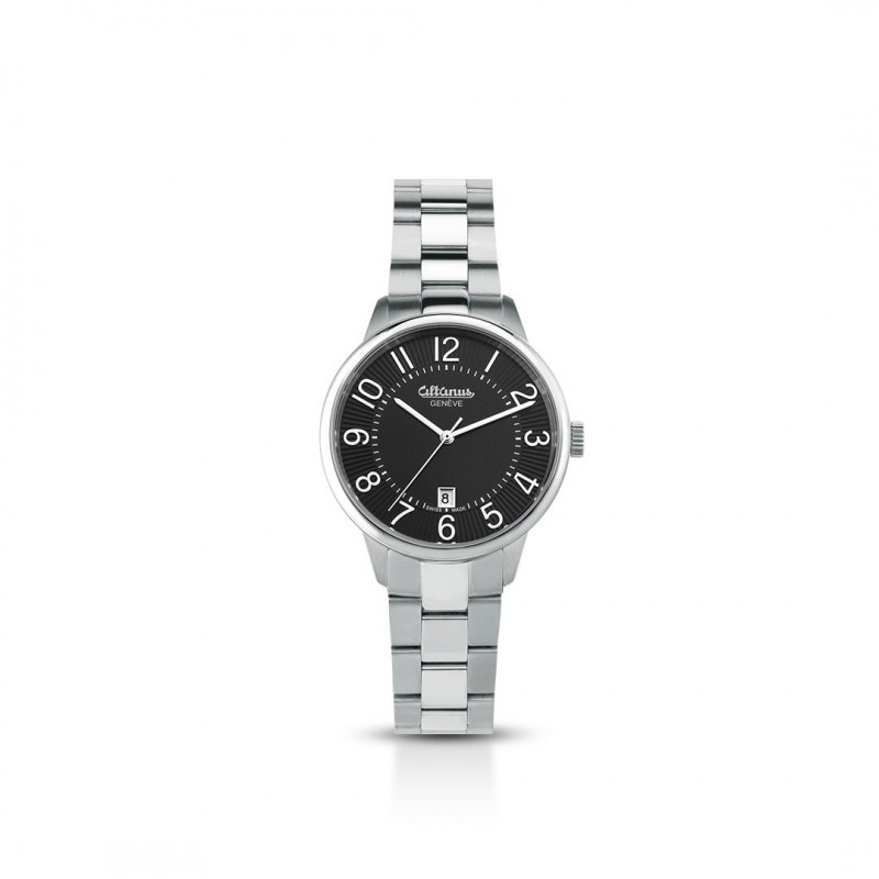 Altanus woman Prime lady watch with 30 mm silver steel case with pressure bottom, black dial with Arabic numerals and date function, sapphire crystal, silver steel strap with safety box closure, water resistance 5 ATM, swiss made certificate
