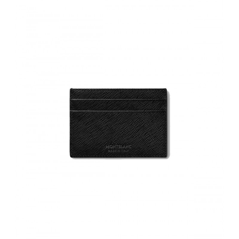 Mont Blanc unisex card holder from the Sartorial collection, crafted from black Saffiano-print full-grain cowhide. Polyamide and cotton lining. The case features five credit card slots and the front is embellished with the Mont Blanc emblem. Dimensions: 110 x 5 x 75 mm.
