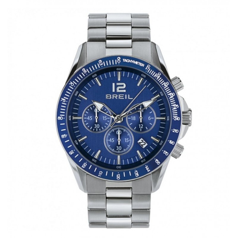 Round stainless steel case with a diameter of 43 mm . Blue aluminum bezel with tachymeter.