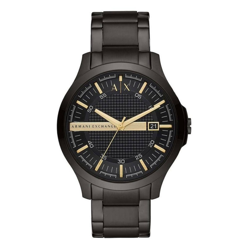 ShippingArmani Exchange Men's Time Only Watch. Model With Round Case In Black Stainless Steel With Glossy, Satin Finish. Case Of Diameter Of 46 Mm And Of Thickness Of 11 Mm. The ring is made of black stainless steel with a satin finish