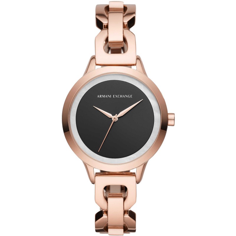 ShippingArmani Exchange Women's Only Time Watch. Clock With Round Case Of 36 Mm Diameter And 8 Mm Thickness. Case Made of Rose Gold Color Stainless Steel With Glossy Finish And Transparent Glass.