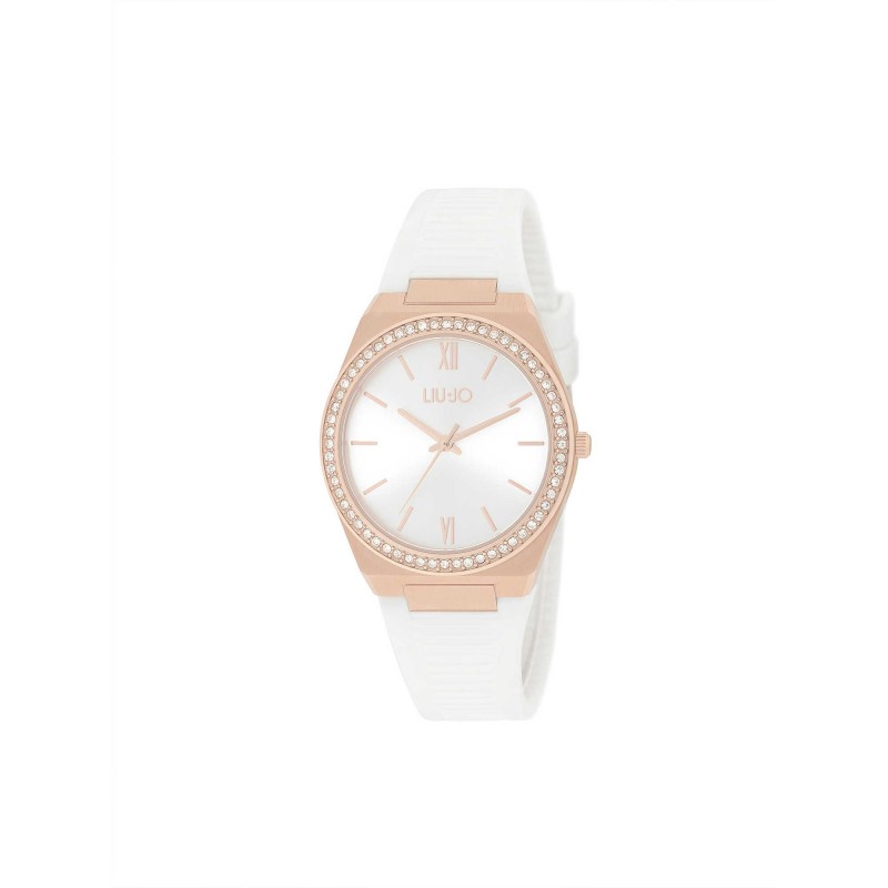 Liu Jo Women's Only Time Clock From the Briza Collection. Watch With 34 Mm Diameter Ip Rose Gold Stainless Steel Case And White Dial. White Silicone Strap. Glass: Mineral, Stones: On the bezel. The All'Acqua Resistance Is 5 Atm And The Movement Is Miyota Cal. Gl30. The reference is Tlj1739