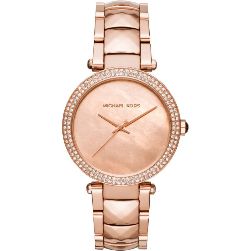 Michael Kors Women's Watch From the Parker Collection. Model Featuring Steel Case, Glossy Finish, Rose Gold Color And Steel / Acetate Bracelet, Glossy Finish, Rose Gold Color. 3 Spheres Clock With Quartz Movement With Case Of 39Mm Size. The Resistance to Water is 10 Atm.