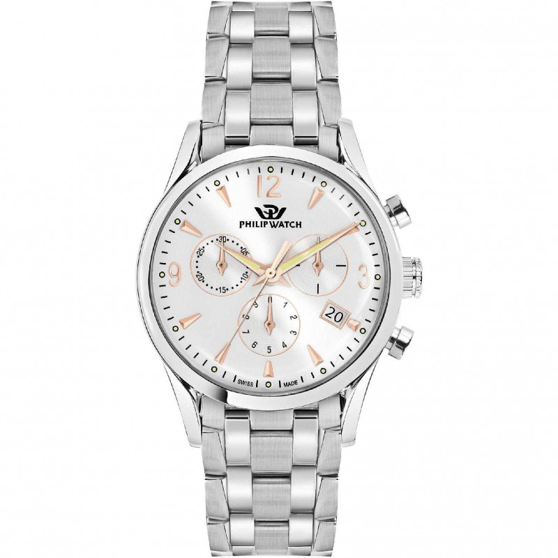 ShippingPhilip Watch Men's Chronograph Watch From the Sunray Collection. Moodello With Polished Steel Case With 39 Mm Diameter And 49.2 X 39 Mm Dimensions. The dial is sandblasted white with mineral glass and silver-colored steel strap with double button closure. Clock With Date Function And 3 Atm Water Resistance.