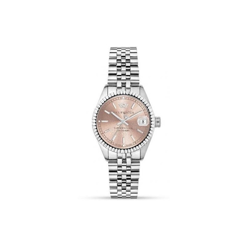 Philip Watch Caribe Ladies Watch - R8253597571 With quartz movement. The case is round in steel with a diameter of 31 mm. The dial is sandblasted pink with white indexes and date window at 3 o'clock. The strap is in jubilee steel and the sapphire crystal. Water resistance is 10 atm.