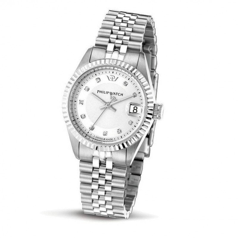 Philip Watch Women's Watch from the Caribe collection, 31 mm Polished Steel Case, Dial with 10 Diamonds, Screw-down Case Back, Sapphire Glass, Steel Jubilèe Strap, Deployant Buckle Closure with Safety Clip, Water Resistant: 10 atm