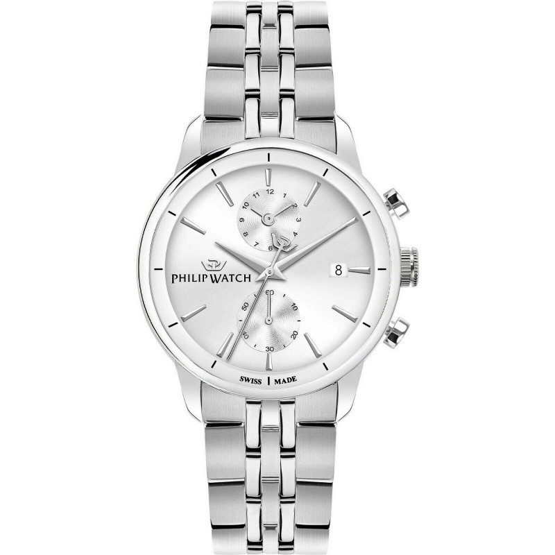 ShippingPhilip watch man watch, quartz movement, chronograph, 40 mm steel case with luddi steel bezel, bright white silver dial with silver indexes, steel strap with butterfly buckle closure, water resistant: 10 atm