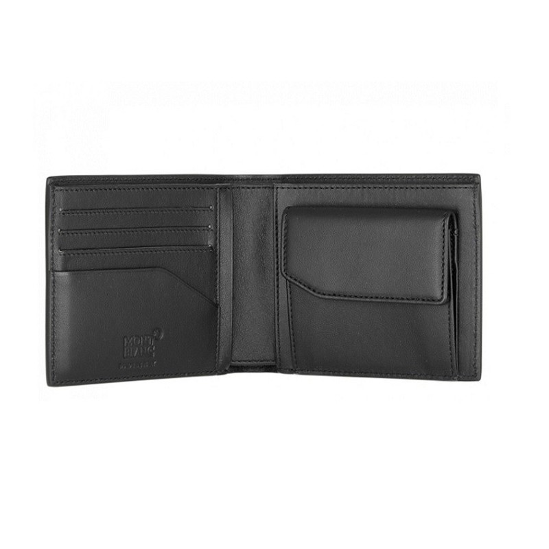 With its bold black color, a mix of smooth leather on the inside and a carbon fiber-effect print on the outside, the wallet is the ideal companion for young urban explorers to store their credit cards and cash. It has four credit card slots, two bill compartments, four additional pockets, and a coin pocket with a flap. The Montblanc Shield technology (RFID-blocking lining) completes the look.