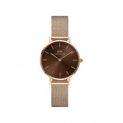 Marque : Daniel Wellington Sexe : féminin Catégorie : montres Sous-catégorie : temps seulement Code fabricant : DW00100479 Collection : Petit Ambre Couleur du cadran : Marron Matière du bracelet : Acier Matériau du boîtier : Acier Taille du boîtier : 28 mm Etanchéité : 30m - 3ATM - 3bar Mouvement : Quartz Couleur du bracelet : or rose Index :...