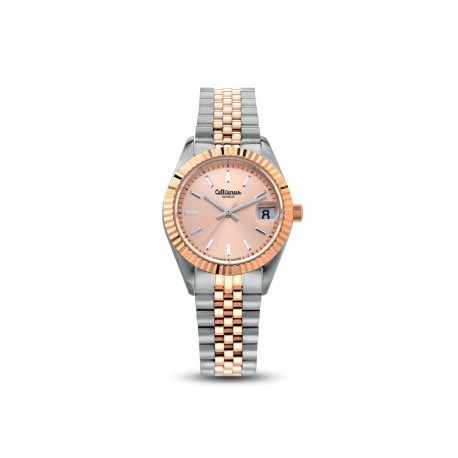 ShippingBoîtier en acier bicolore avec traitement jpg jpr, verre saphir, avec lunette cannelée et couronne vissée de 31 mm sous 10 atm de profondeur.