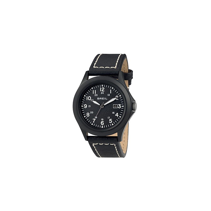 Montre Breil time only pour homme de la collection Army In avec boîtier en acier de 42 mm.Montre à mouvement à quartz Miyota 2115. Boîtier en acier de 42 mm avec traitement IP noir. Sphères avec effet Superluminova Cadran circulaire noir avec chiffres arabes et fonction date, verre minéral. Bracelet en cuir naturel noir avec fermeture à épingle, résistant à l'eau 5 ATM