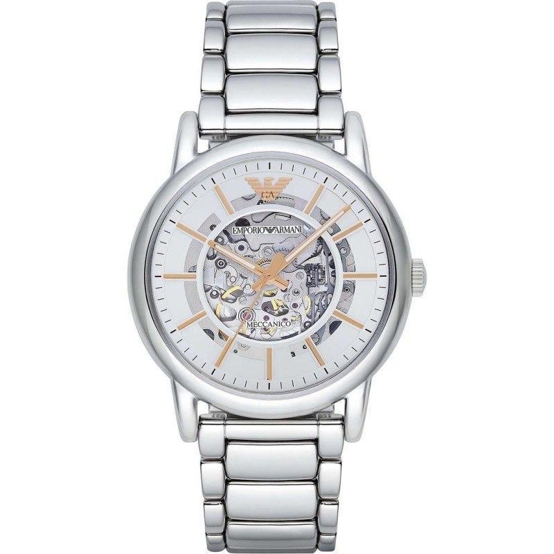 Montres-bracelets élégantes Emporio Armani Meccanico AR1980 homme analogique avec mouvement mécanique, boîtier en acier inoxydable de 43 mm de diamètre, verre minéral et bracelet en acier inoxydable