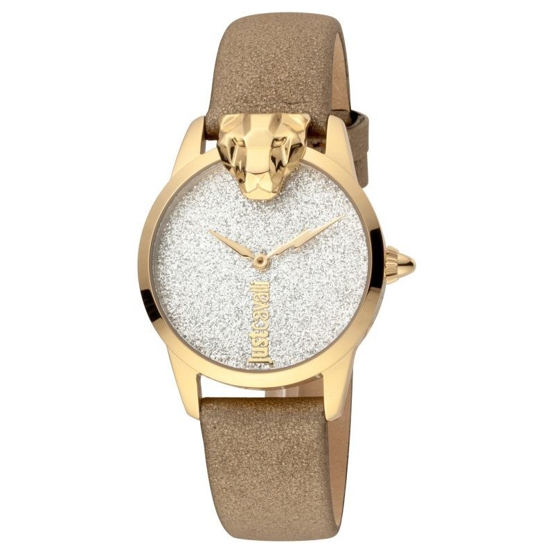 Montres-bracelets décontractées Just Cavalli Time Animalier JC1L057L0225 femme analogique avec mouvement à quartz, boîtier en acier inoxydable de 32 mm de diamètre, cadran en or, verre plastique et bracelet en cuir de veau