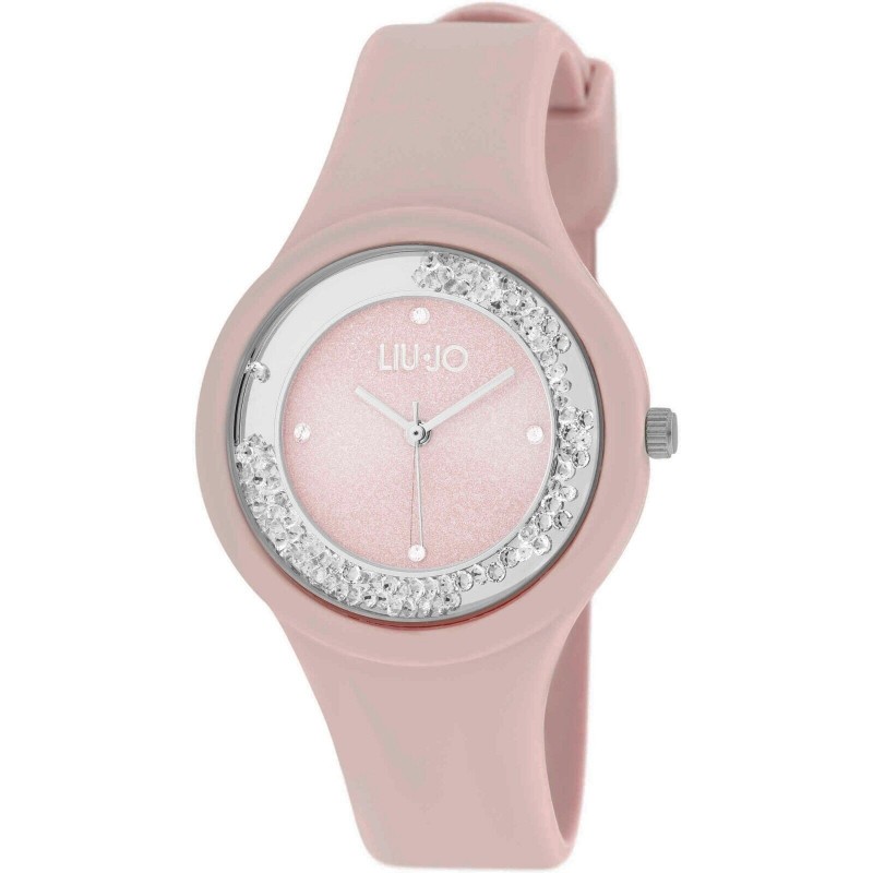 Montre-bracelet pour femme Liu Jo de la collection Dancing sport avec mouvement à quartz Miyota avec fonction horaire uniquement. Coque en silicone pêche d'un diamètre de 35 mm. Fond en acier étanche à la pression. Verre minéral. Couronne de réglage en acier verrouillée par pression. Cadran analogique pêche avec paillettes et cristaux rotatifs et 4 index en pierre. Bracelet en silicone pêche avec boucle ardillon en acier, étanche 3 ATM : résiste aux projections d'eau mais pas à la pression.