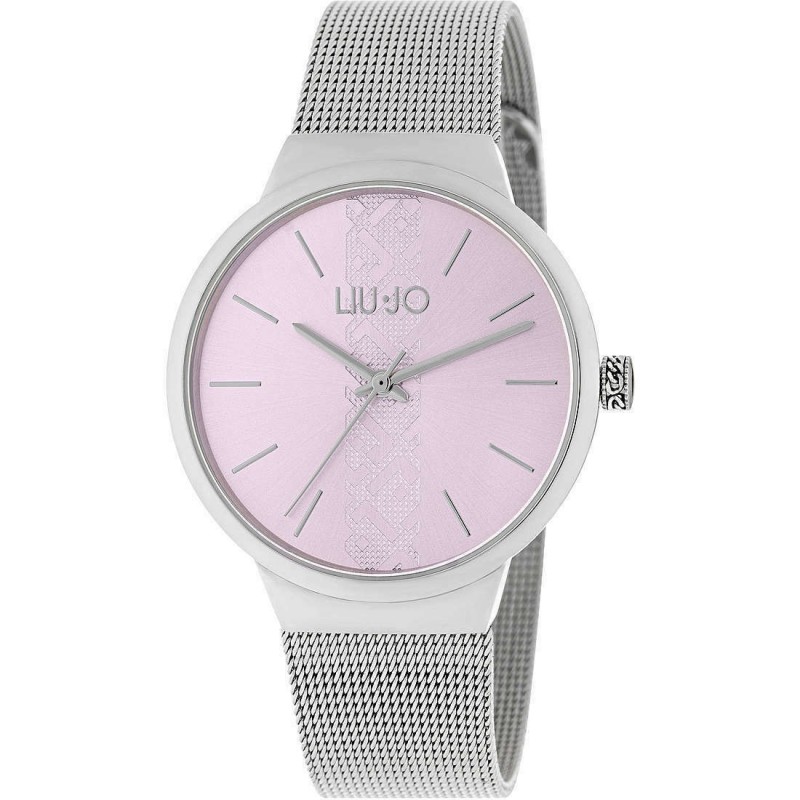 Trois aiguilles argentées, index bâtons et logo Liu Jo en haut du cadran