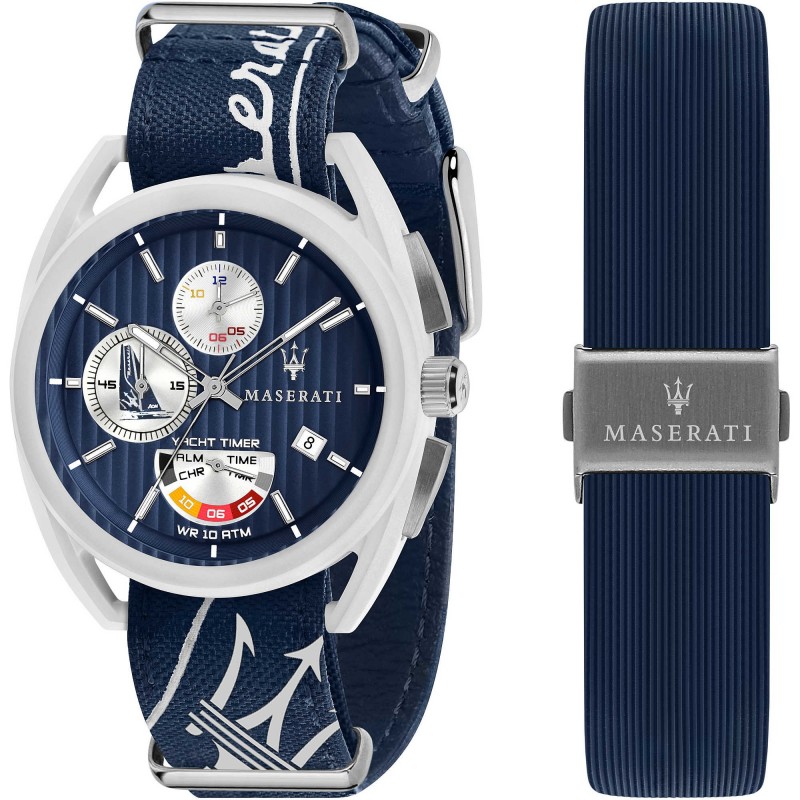ShippingMontre chronographe pour homme Maserati de la collection Trimarano. Modèle en fibre de verre, acier et cuir. Le caissier