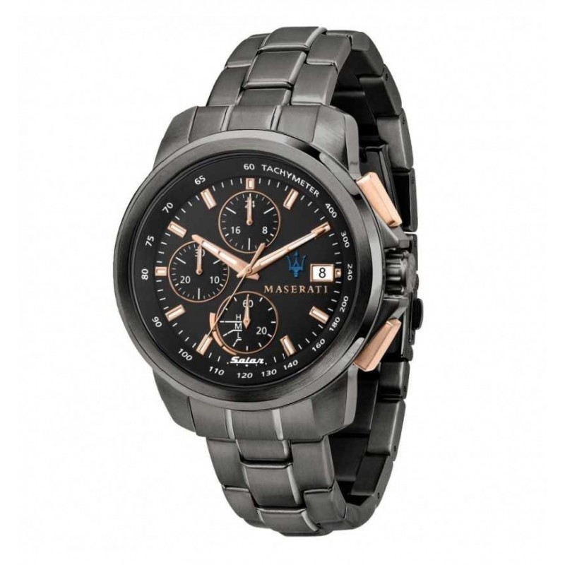 ShippingMontre homme Maserati de la collection Successo. Horloge solaire uniquement avec cadran gris. Le boîtier est de couleur bronze poli et satiné