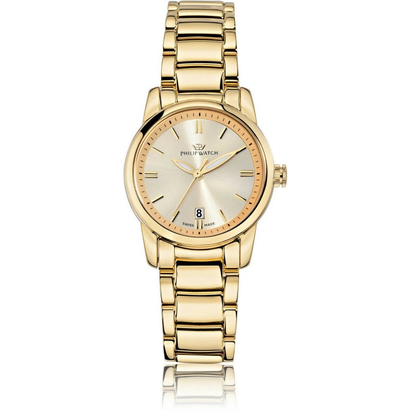 Montre Philip Watch. Collection Kent Lady, Taille du boîtier : Mm 30, La forme du boîtier est ronde, Le bracelet est en acier de couleur acier Pvd Or jaune, Le mouvement est à quartz uniquement, avec indication des minutes, des secondes et des heures
