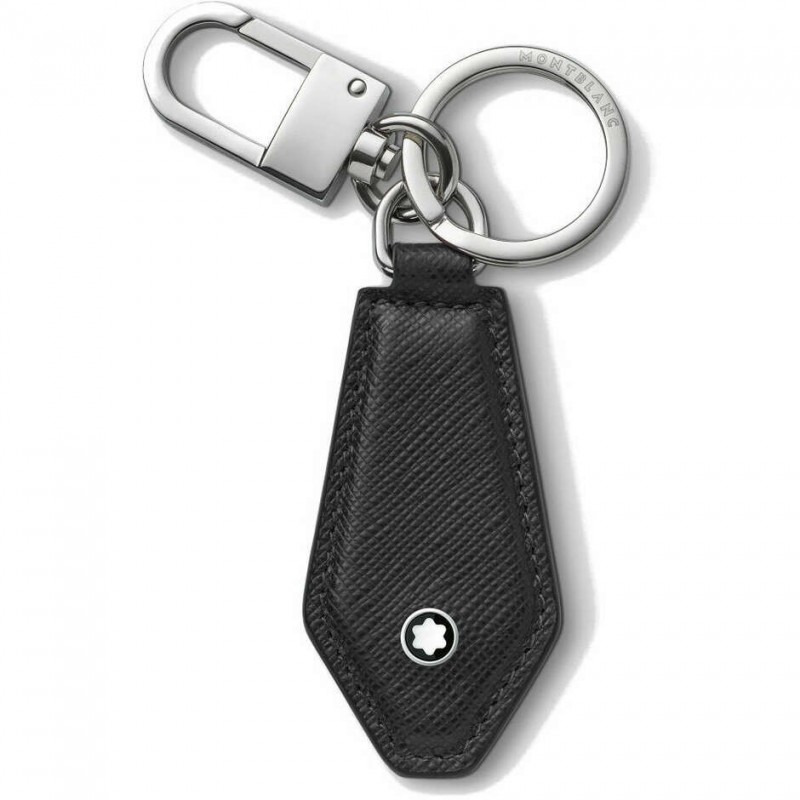 Porte-clés unisexe Montblanc en forme de losange de la collection Sartorial en cuir de vachette pleine fleur fin avec imprimé saffiano noir avec anneau en acier et crochet pour attacher les clés, sacs et autres accessoires. Les dimensions correspondent à 35 x 15 x 120 mm.