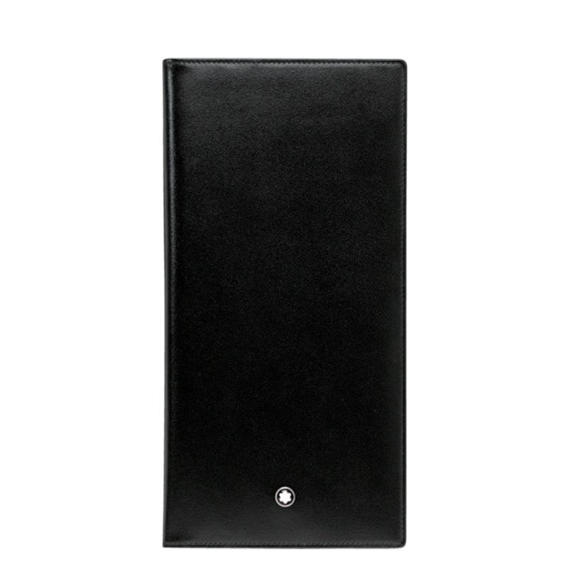 Portefeuille homme Montblanc de la collection Meisterstück, en cuir de vachette pleine fleur européen au tannage au chrome, teint dans la masse, avec doublure jacquard ornée du nom Montblanc et de l'emblème Montblanc avec anneau palladié. Il comprend 6 emplacements pour cartes de crédit, 2 compartiments pour billets et 2 poches supplémentaires. Dimensions : 95 x 15 x 190 mm.