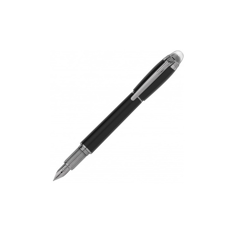 Stylo plume Mont Blanc de la collection unisexe Starwalker Ultra Black en résine précieuse noire et métal finition mate, agrafe recouverte de ruthénium noir, emblème Montblanc flottant dans un dôme translucide. plume en or 14K / Au585 revêtue de ruthénium fabriquée à la main. Le système d'écriture est de type stylo plume, les dimensions correspondent à 135,7x14,9 mm tandis que le poids correspond à 28,32 g.