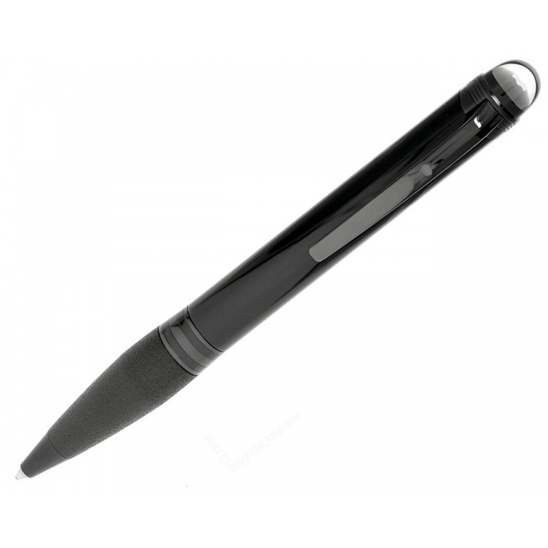 Stylo bille unisexe Montblanc StarWalker Blackcosmos en résine précieuse noire brillante avec revêtement ruthénium. Le capuchon métallique est perforé et la pointe en résine précieuse transparente est ornée du logo Montblanc blanc. Le stylo mesure 134,5 x 13,10 mm et pèse 42,04 grammes.