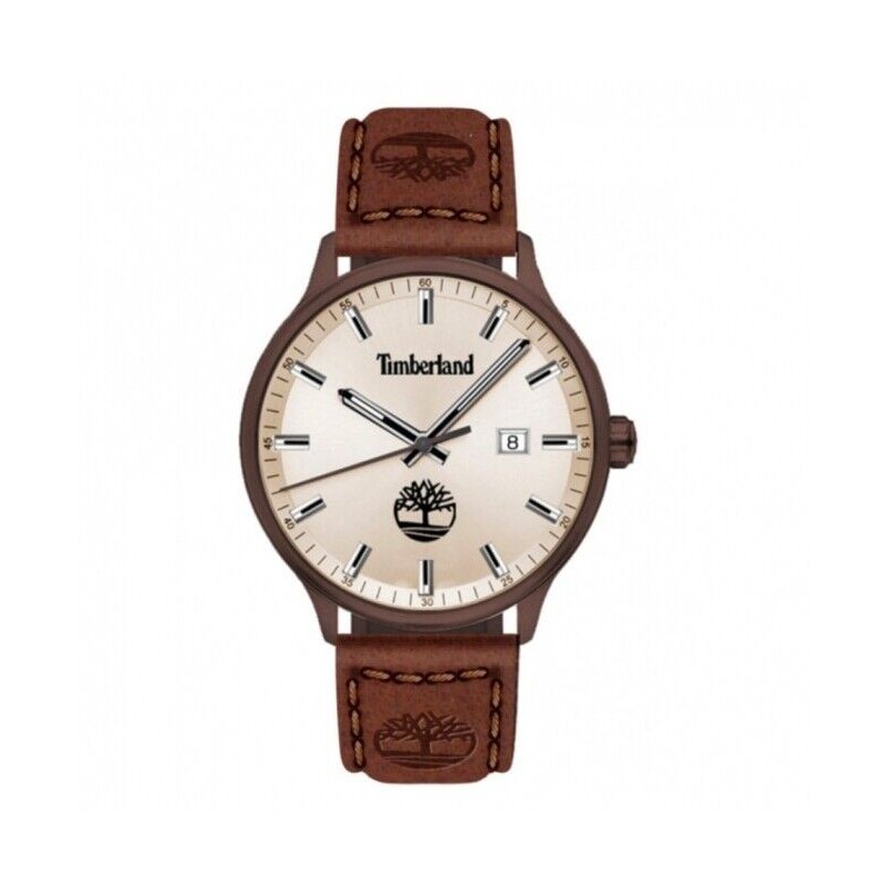 Montre-bracelet pour homme Timberland de la collection Southford avec mouvement à quartz et fonction heure uniquement avec date. Boitier en acier inoxydable avec traitement IP couleur bronze, forme ronde, 45 mm de diamètre et 12 mm d'épaisseur, fond de boîte en acier vissé, couronne d'extraction, cadran analogique argenté avec index bâtons, affichage de la date à 3h, logo sur le dessus, minéral verre. Bracelet en cuir marron avec fermeture à boucle ardillon, étanche 5 ATM : résistant aux projections d'eau mais pas sous pression.
