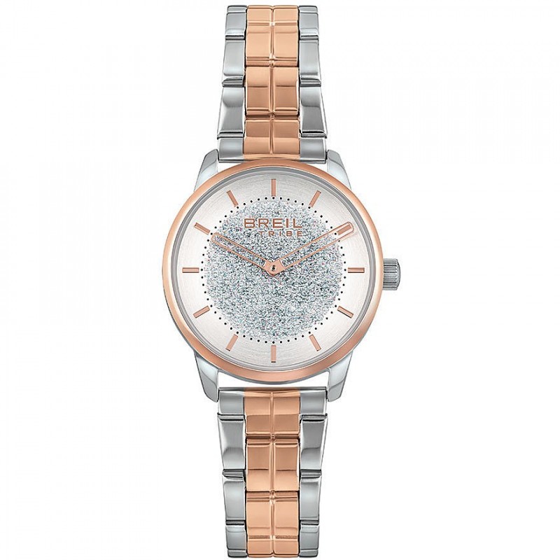 Orologio solo tempo a 2 lancette da donna di Breil tribe della collezione lucille. Orologio solo tempo a 2 lancette con cassa in acciaio lucido di 32 mm e lunetta rosata lucida. Movimento al quarzo tmi vj20. La resistenza all'acqua è 5 atm. Quadrante argento con doppia finitura: la sezione centrale con glitter e la sezione esterna con finitura sunray. Sfere scheletrate rosate. Indici rosati applicati a bastoni. Orologio con vetro minerale. Bracciale in acciaio lucido con sezione centrale rosata. Chiusura con pulsanti.