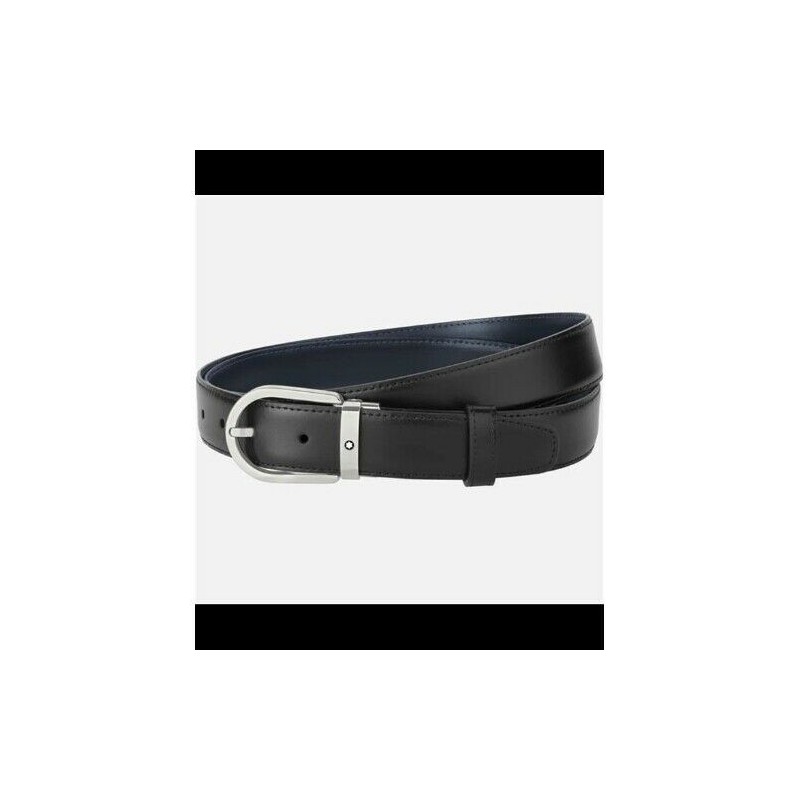 Cinturino Reversible matt black/blue split cowhide leather with PU finishing