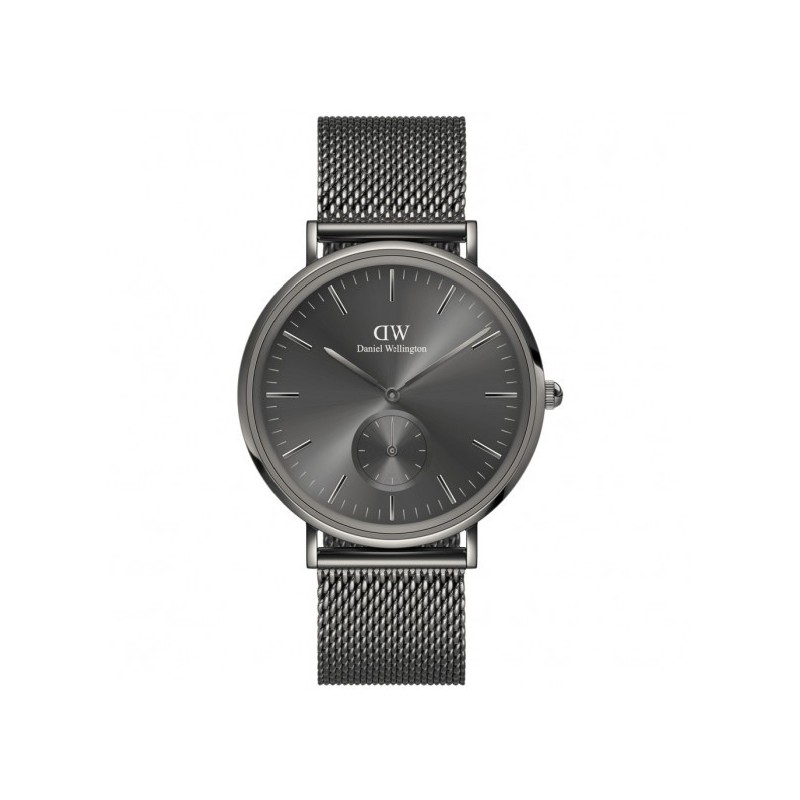 Orologio da polso uomo Daniel Wellington della collezione Multi-Eye con movimento al quarzo e funzioni di solo tempo. Cassa in acciaio inossidabile PVD grigia di forma rotonda del diametro di 40 mm e spessore di 6 mm. Quadrante analogico grigio con indici a bastoni, logo nella parte alta e contatore con piccolo secondo nella parte bassa, vetro minerale. Cinturino in acciaio inossidabile PVD grigio in maglia milano con chiusura scorrevole regolabile e fermo di sicurezza, resistente all'acqua 3 ATM: resistente agli spruzzi d'acqua ma non sotto pressione.
