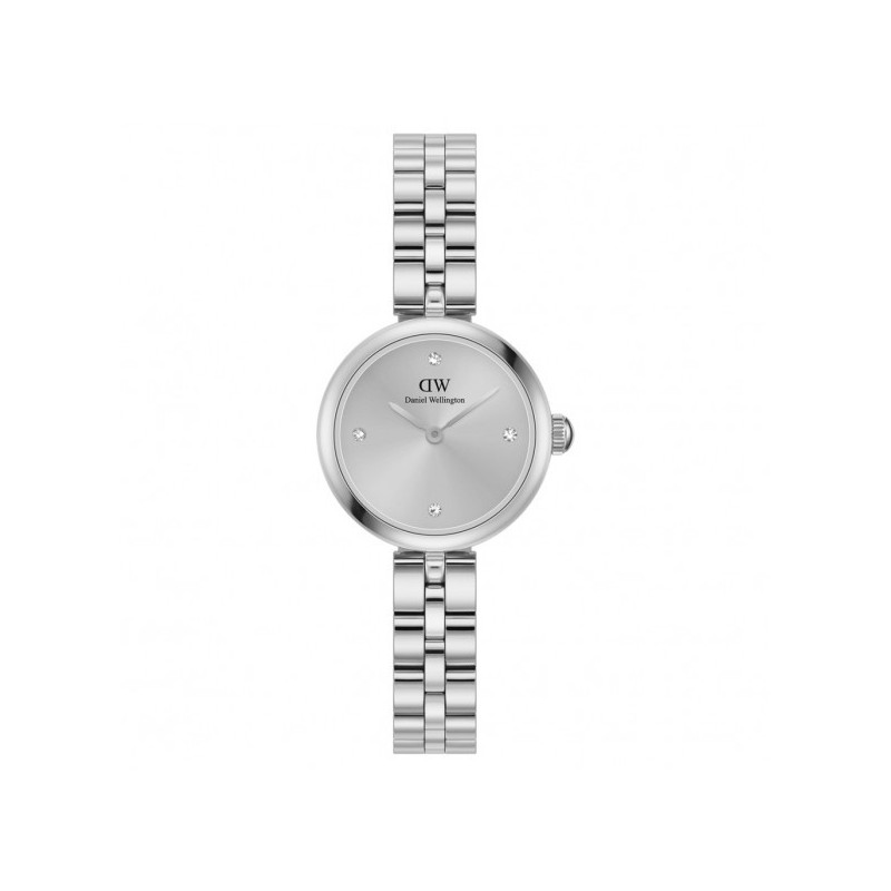 Orologio da polso donna Daniel Wellington della collezione Elan Lumine con movimento al quarzo e funzioni di solo tempo. Cassa in acciaio inossidabile di forma rotonda color argento del diametro di 22 mm. Quadrante analogico argento con cristalli agli indici, logo sulla parte alta, vetro minerale. Cinturino in acciaio inossidabile color argento con chiusura deployante, resistente all'acqua 3 ATM: resistente agli spruzzi d'acqua ma non sotto pressione.