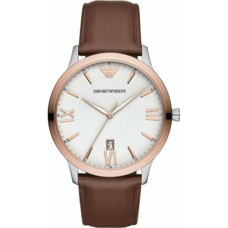 ShippingOrologio Uomo Emporio Armani AR11211 modello Giovanni, Cassa in Acciaio Inossidabile di Diametro 44mm, quadrante Bianco, vetro Minerale e cinturino in Vera Pelle di colore Marrone