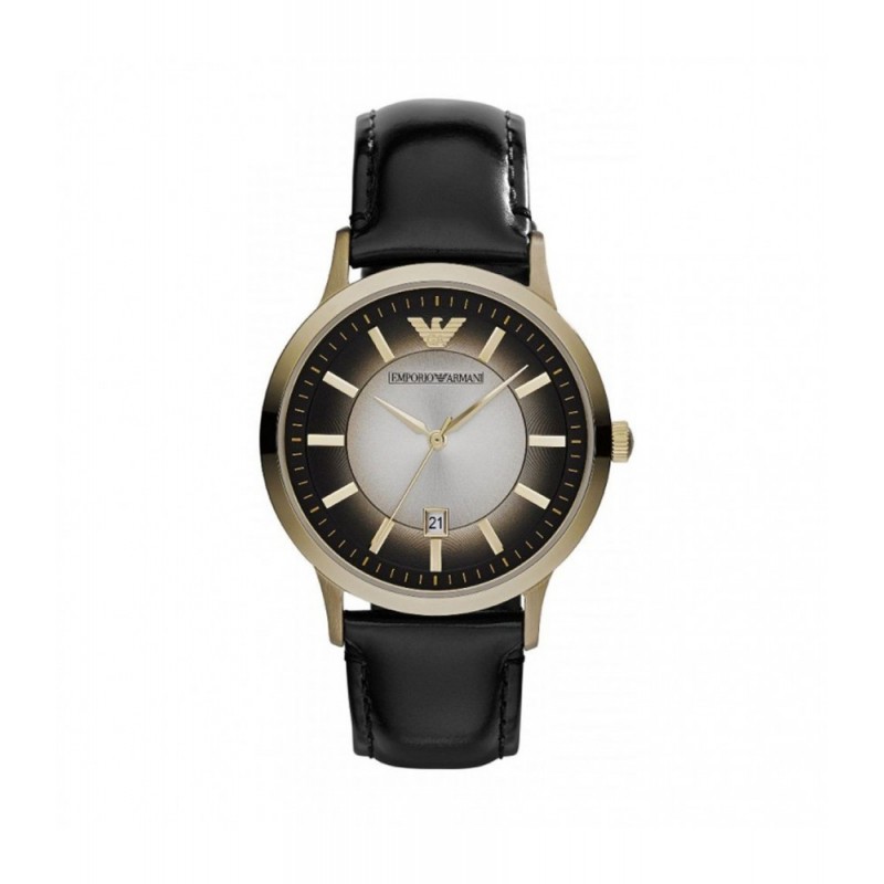 ShippingOrologio da Uomo Solo Tempo Emporio Armani. Movimento al quarzo batteria. Cassa Tonda in Acciaio da 43mm. Quadrante Rosé con Lancette Acciaio. Datario. Vetro Minerale. W.R. 5 atm. (subacqueo 50 metri). Cinturino in Pelle Nera.