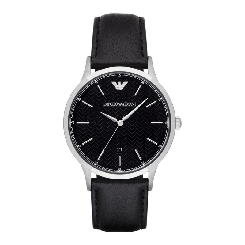 Orologio da polso elegante Emporio Armani AR8035 analogico uomo con movimento al quarzo, cassa in acciaio inossidabile di diametro 43 mm color argento, quadrante nero con indici geometrici color argento, display analogico con funzione data, vetro minerale e cinturino in pelle di vitello nero con chiusura fibbia,resistente all'acqua 50m/ 5 ATM
