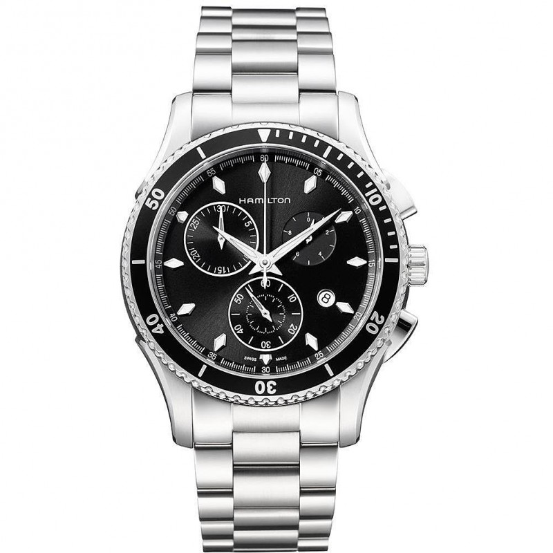 Orologio Cronografo Da Uomo Di Hamilton Della Collezione Jazzmaster, Modello: Seaview. Orologio Con Cassa In Acciaio Del Diametro Di 44 Mm E Altezza Di 12.60 Mm. Il Quadrante È Di Colore Nero. Il Cinturino È In Acciaio Con Chiusura Pieghevole. Vetro: Zaffiro Con . Calibro: 251274. La Resistenza All'Acqua È Di 10 Atm. Il Movimento È Quarzo.
