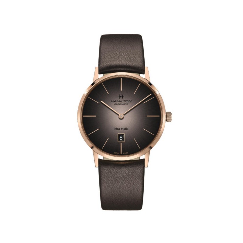 Orologio con cassa in acciaio, finitura lucida, riv. pvd oro rosa del diametro di 42 mm, quadrante di colore grigio e lunetta in acciaio, finitura lucida, riv. pvd oro rosa.