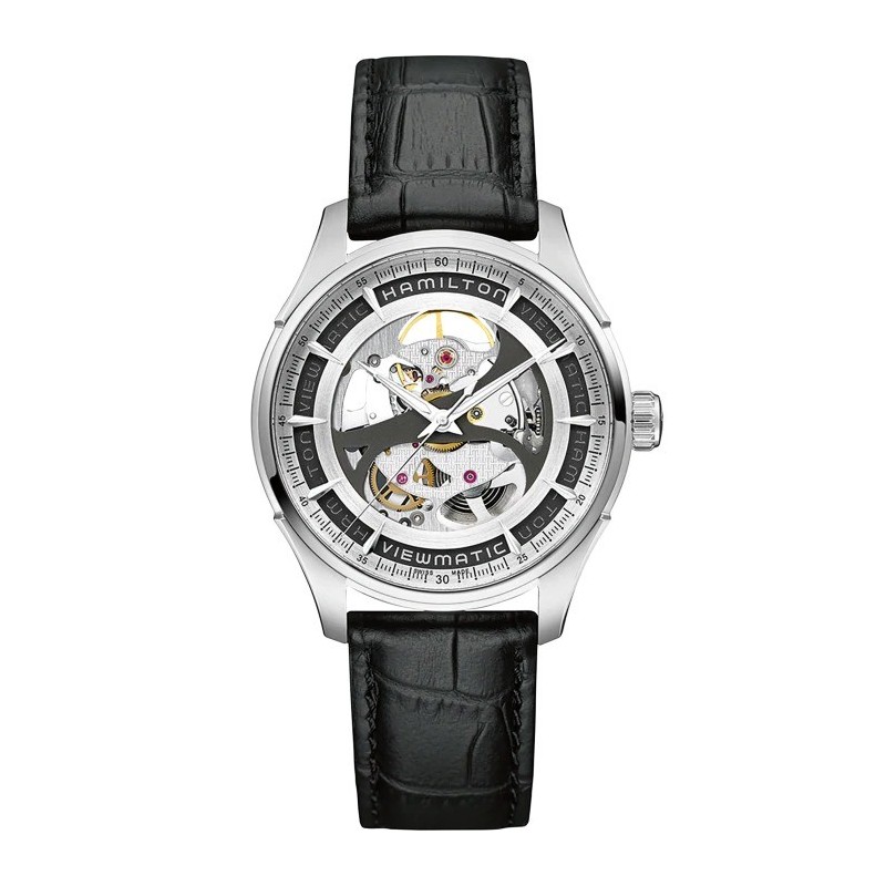 Orologio meccanico da uomo di Hamilton della collezione Jazzmaster, Modello: Skeleton Gent. Orologio con cassa in acciaio finitura alternata del diametro di 40 mm, altezza di 11 mm e quadrante di colore argento, scheletrato e lunetta in acciaio, finitura lucida. Cinturino in pelle di vitello di colore nero con chiusura fibbia ad ardiglione. Vetro: zaffiro con copertura singola, calibro: C07.631 e riserva di carica di 80H. La resistenza all'acqua è di 5 ATM E Il Movimento è automatico con funzione solo tempo. Certificato swiss made