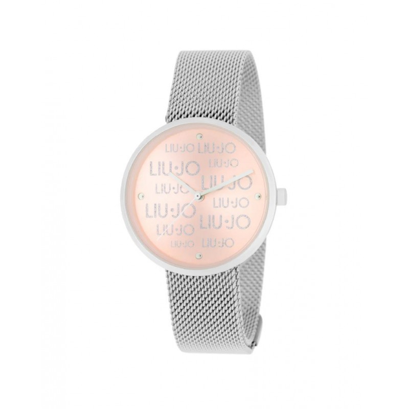 Orologio da donna Liu Jo della collezione Magic con movimento Miyota 2035 al quarzo e funzioni di solo tempo. Cassa rotonda in acciaio inox color argento dal diametro di 35 mm. Quadrante analogico rosa pallido caratterizzato dal nome del brand scritto in diverse dimensioni e da quattro cristalli. Vetro minerale. Cinturino in maglia milano d'acciaio anallergico color argento con chiusura regolabile e fermo di sicurezza. Resistente all'acqua fino a 3 ATM: resistente agli spruzzi d'acqua ma non sotto pressione