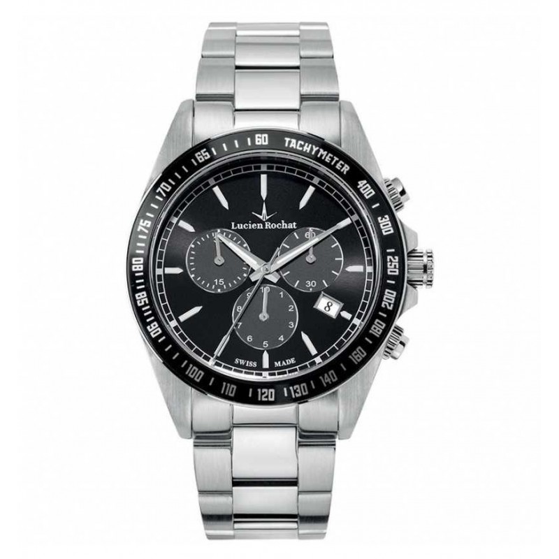 Orologio da uomo Lucien Rochat R0473605002. Collezione Reims. cronografo con movimento MVT. RONDA 5040.D CHR.DAT.H4 OB. con funzione data. La cassa in acciaio lucido e satinato. di forma rotonda. misura 42 mm e monta un vetro zaffiro. Questo orologio è caratterizzato da un quadrante sunray nero e un cinturino in acciaio. colore argento. con fibbia deployante. Resistente all'acqua fino a 10 ATM
