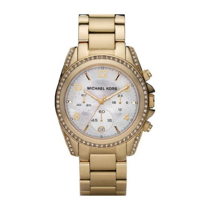 orologio donna michael kors cronografo con movimento al quarzo, Vetro minerale, quadrante analogico, Chiusura con fermo di sicurezza, Materiale della cassa: acciaio inox laminato oro Diametro della cassa 39mm, Spessore della cassa 12mm, Colore cinturino oro, Colore quadrante madreperla