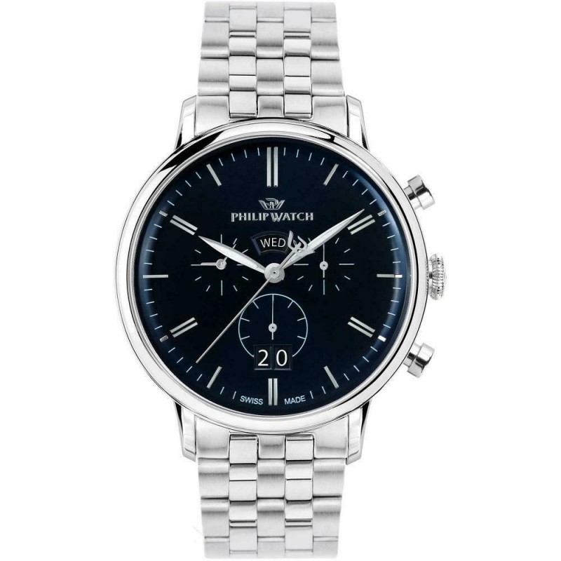 ShippingOrologio Cronografo Di Philip Watch Da Uomo Della Collezione Truman. Orologio Con Cassa In Acciaio Della Dimensione Di 49X41Mm E Dello Spessore Di 10,9 Mm. Modello Con Quadrante Di Colore Sunray Blu E Vetro Zaffiro.