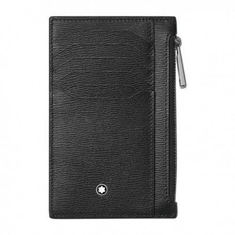 Custodia Meisterstück 4810 Mont Blanc realizzato in pelle bovina pieno fiore eco-sostenibile stampata a impatto zero di colore nero con otto aperture per carte di credito,concia al cromo, tintura passant, fodera in poliammide rigenerato e un portamonete con cerniera.Il formato compatto permette di riporlo facilmente nella maggior parte delle tasche.Le dimensioni corrispondono a 85 x 5 x 135 mm